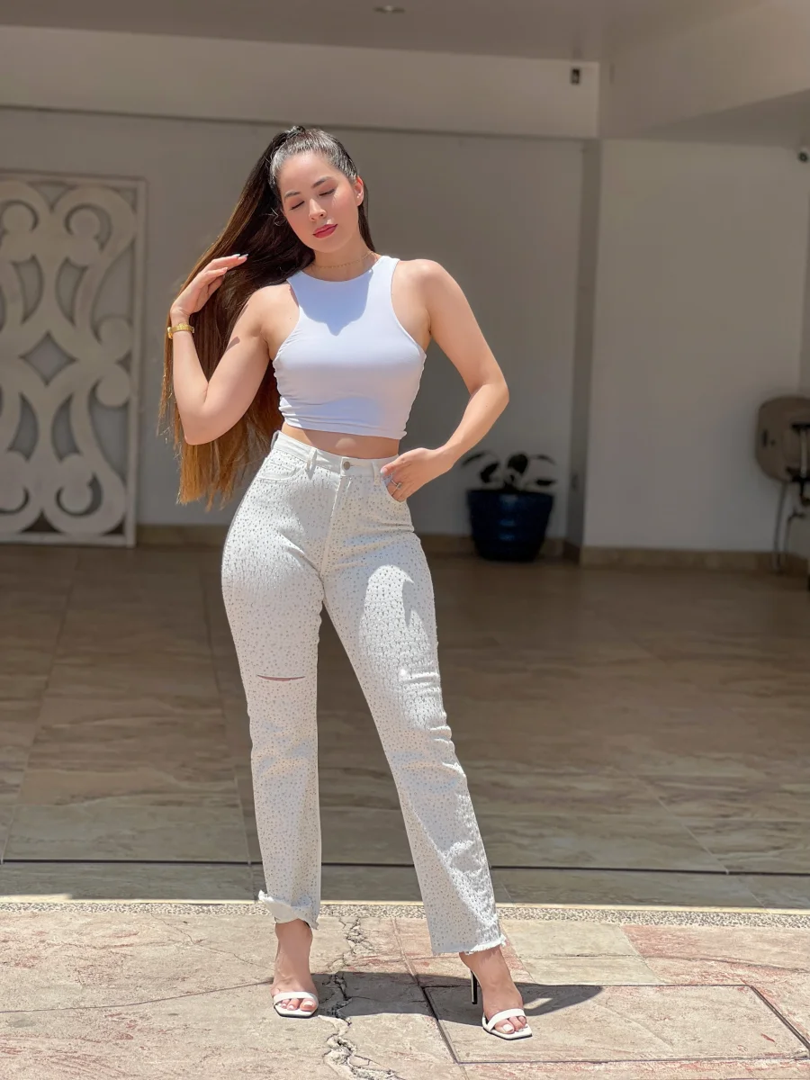 PANTALÓN BLANCO TELA TOTALMENTE DE PEDRERÍA FINA