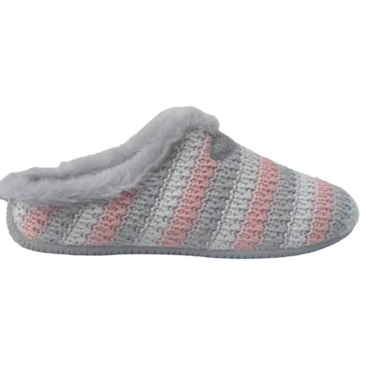 ZAPATILLA PARA EL HOGAR GRIS PERLA-MALVA