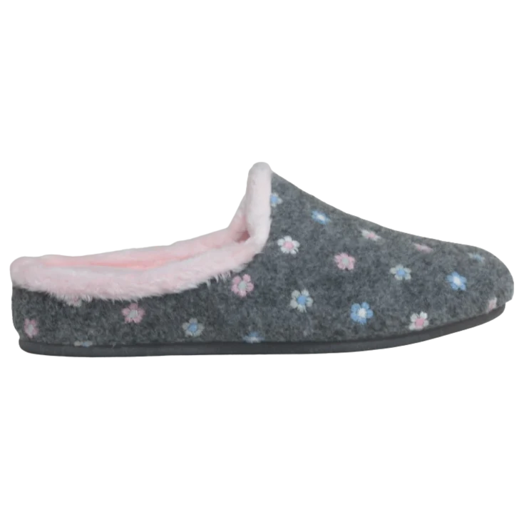 ZAPATILLAS PARA EL HOGAR «FLOWERS» (ZUECO RIBETE) GRIS