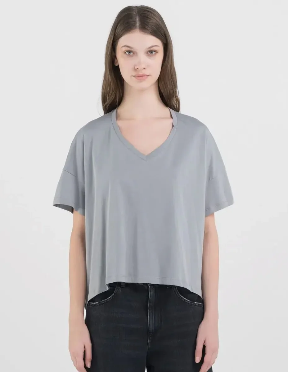 Camiseta GUESS con Logo con Tachuelas Gris Mujer
