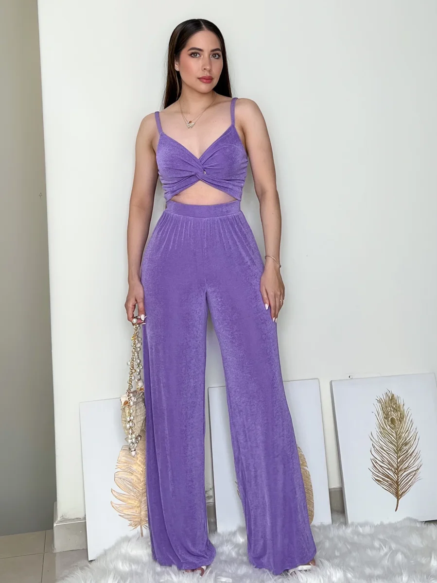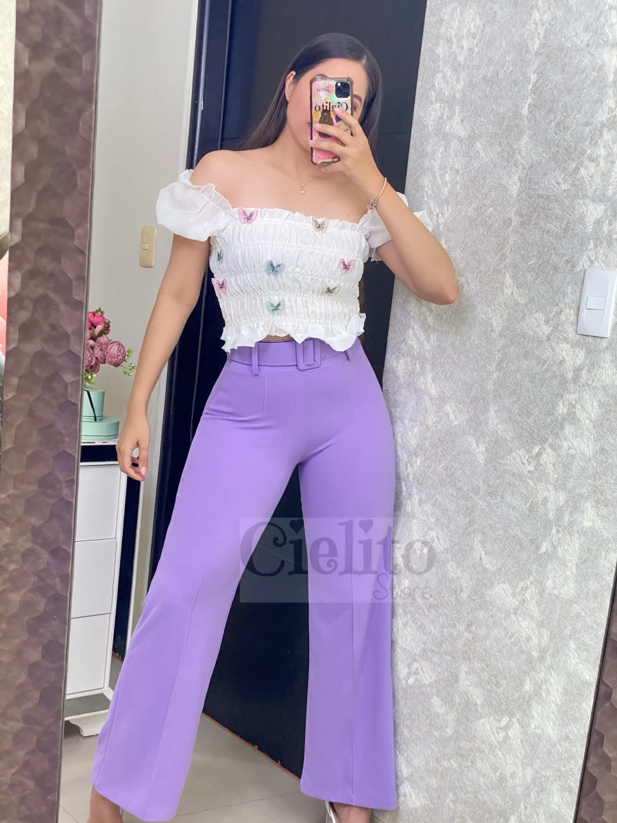 Pantalón morado con cinturón