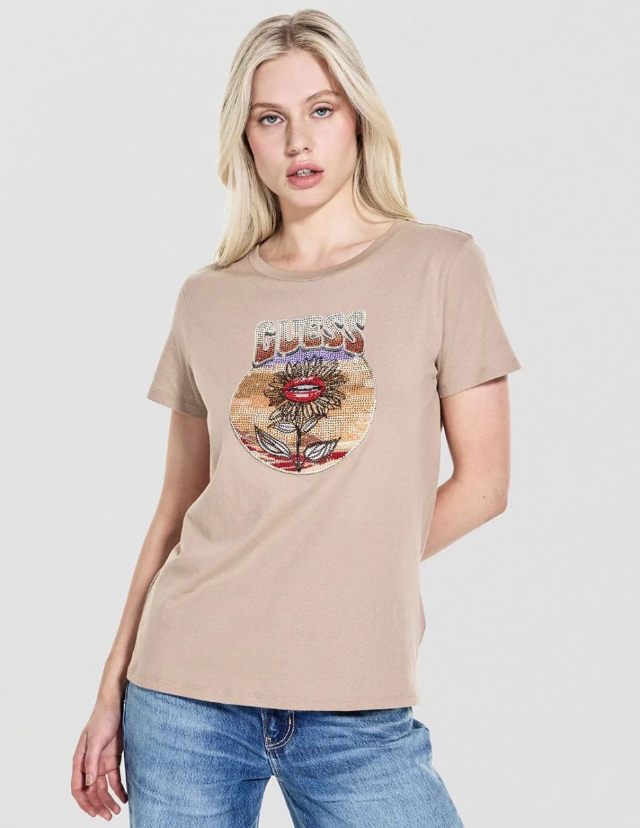 Camiseta GUESS Eco Desert Flower Marrón Mujer