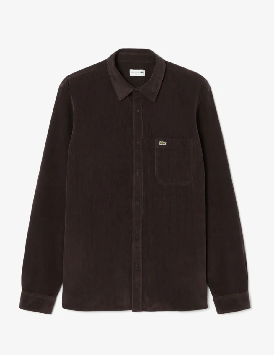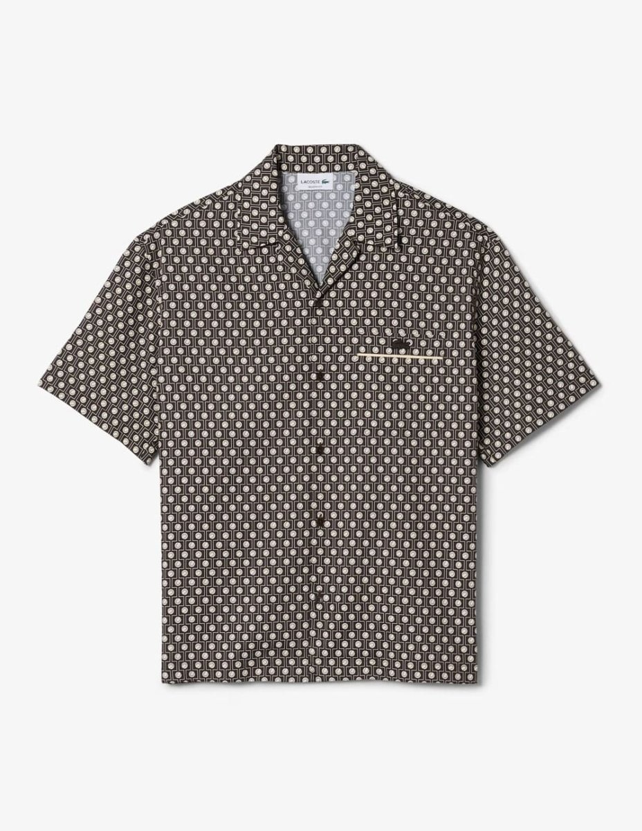 Camisa Lacoste de Manga Corta Estampada Marrón Hombre