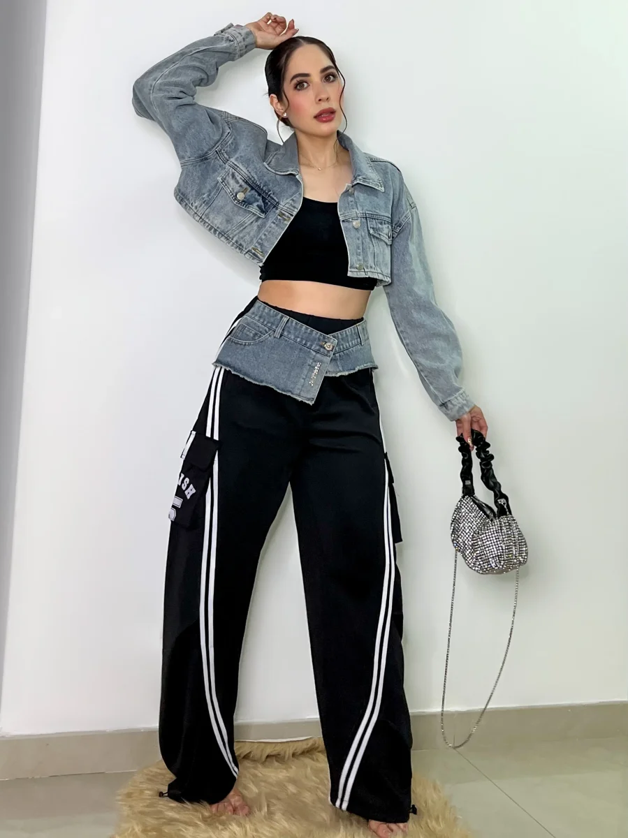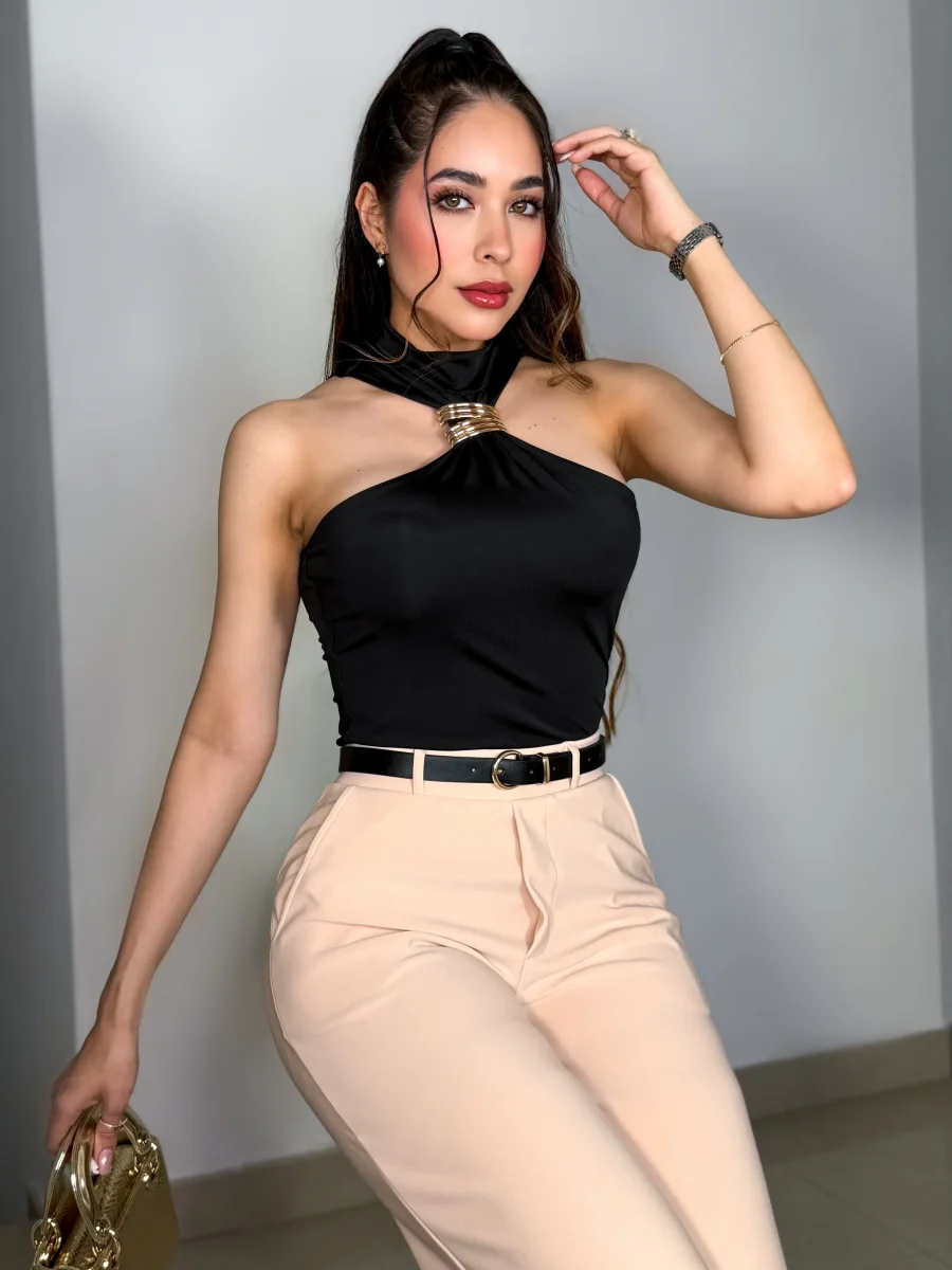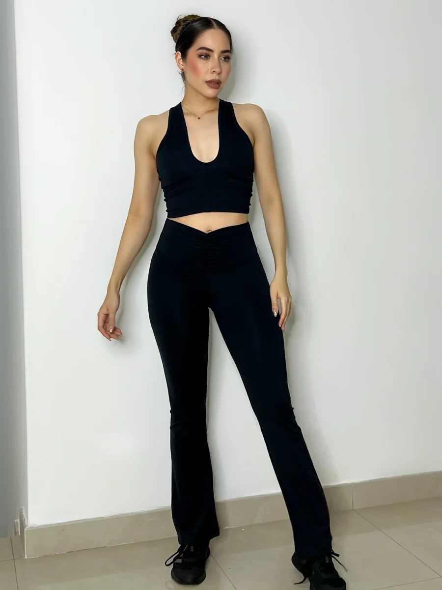 PANTALÓN NEGRO SATINADO CON TIRANTES