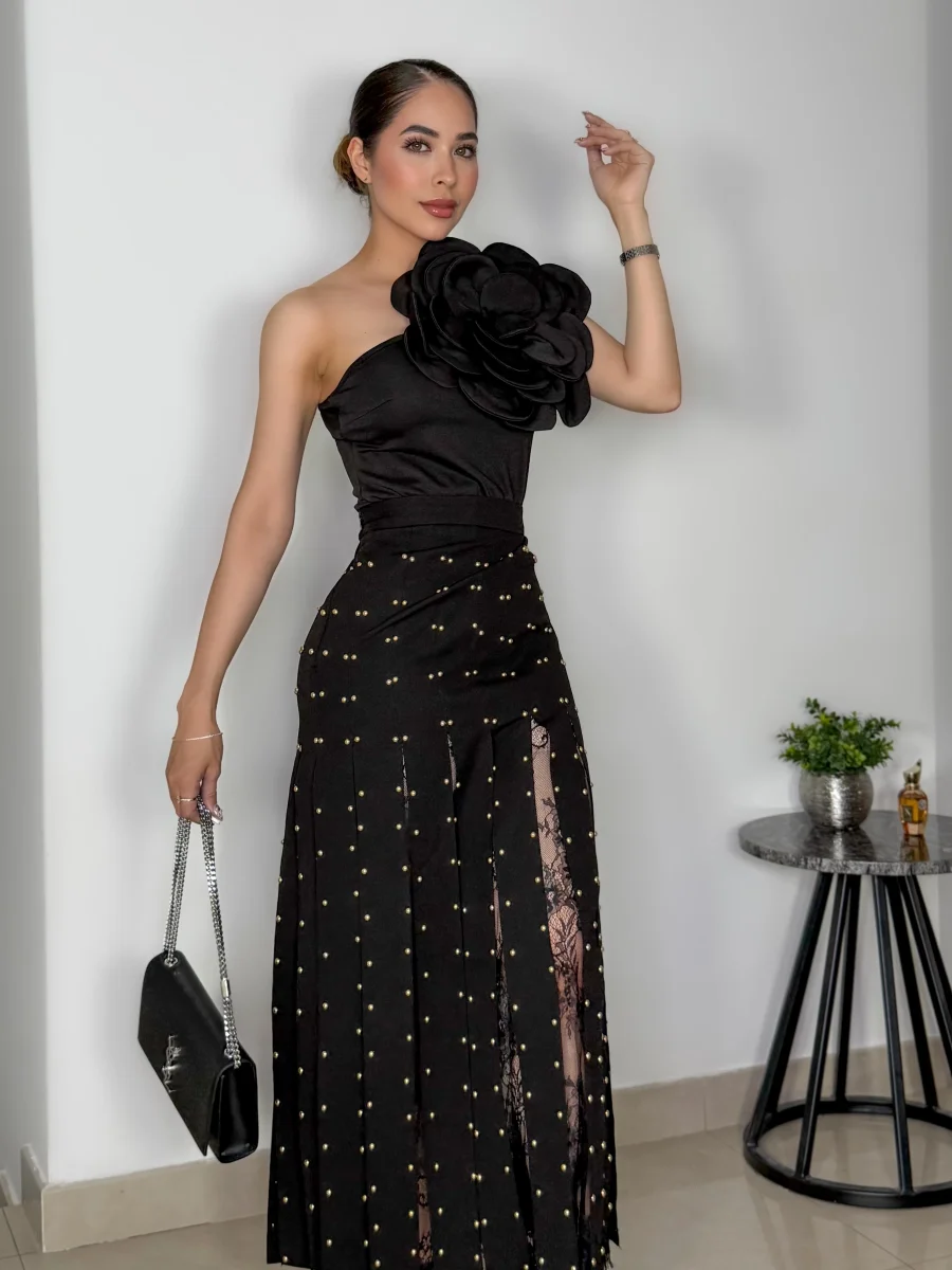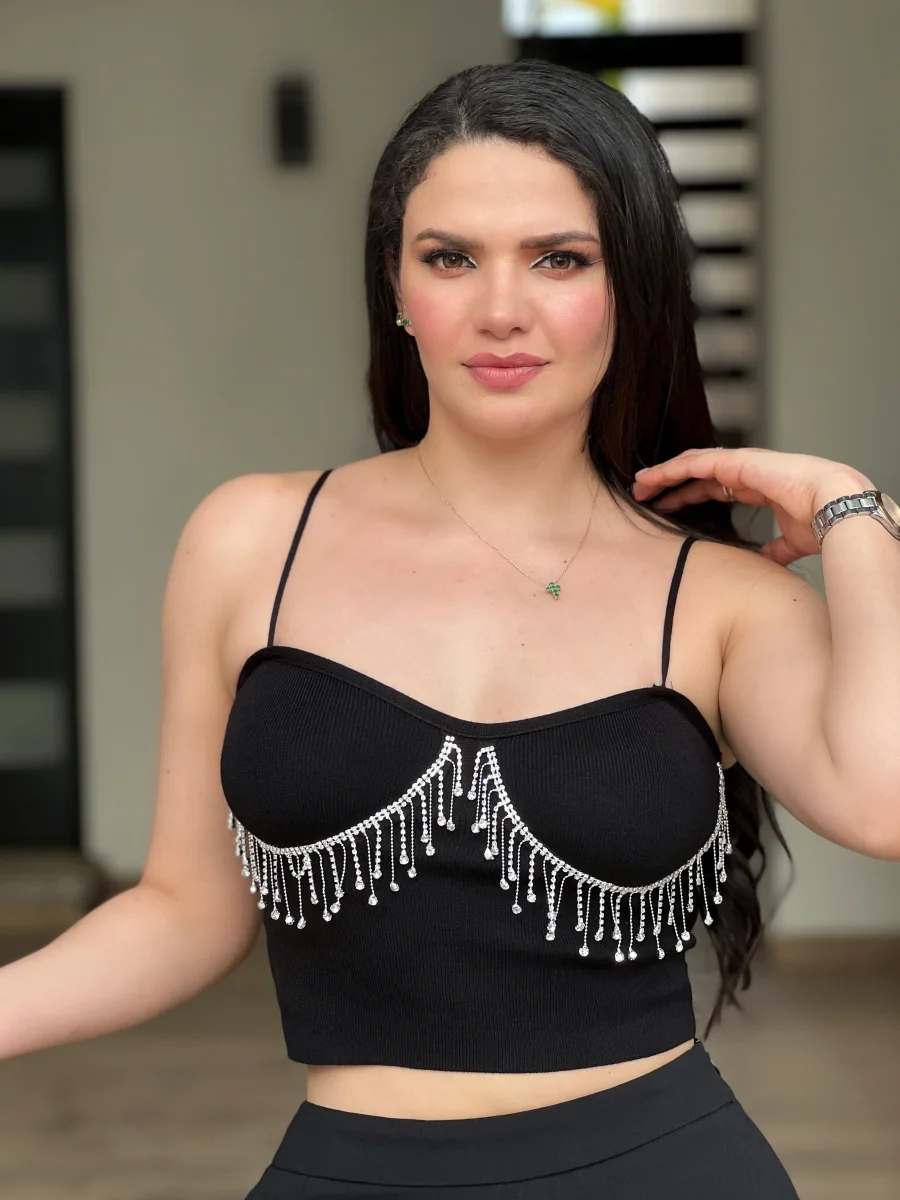 BOTÍN NEGRO CON MALLA DE PEDRERÍA
