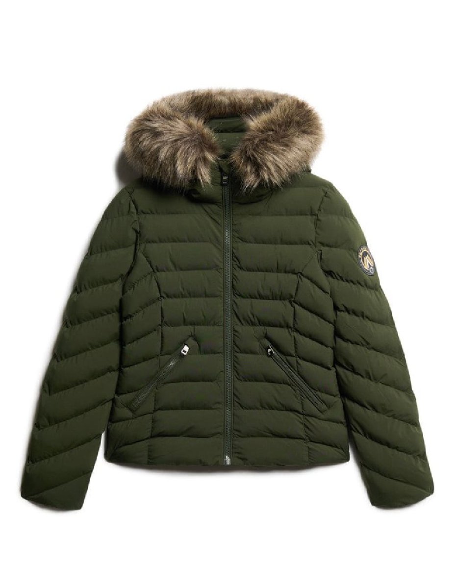 Chaqueta Acolchada Superdry con Capucha Verde Mujer