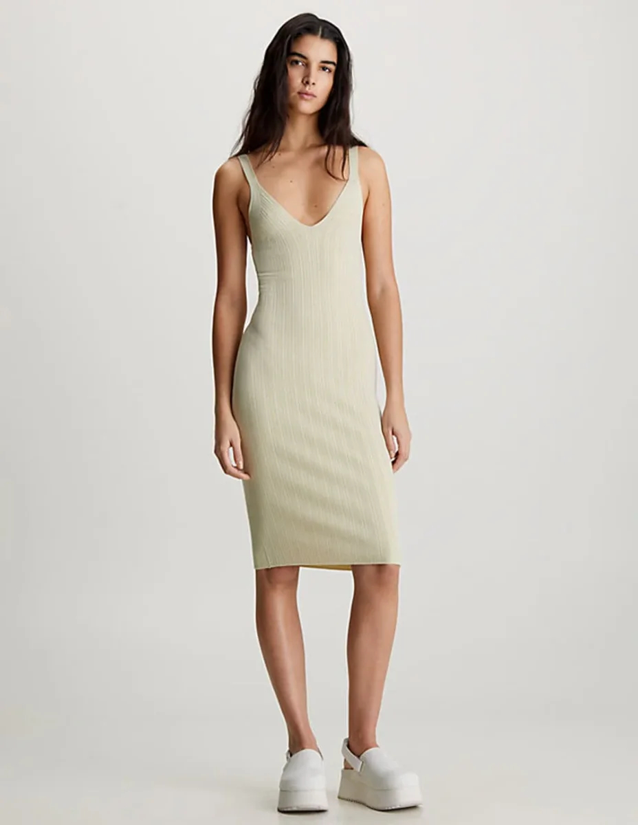 Vestido Calvin Klein Jeans de Canalé De Lyocell Suave Verde Mujer