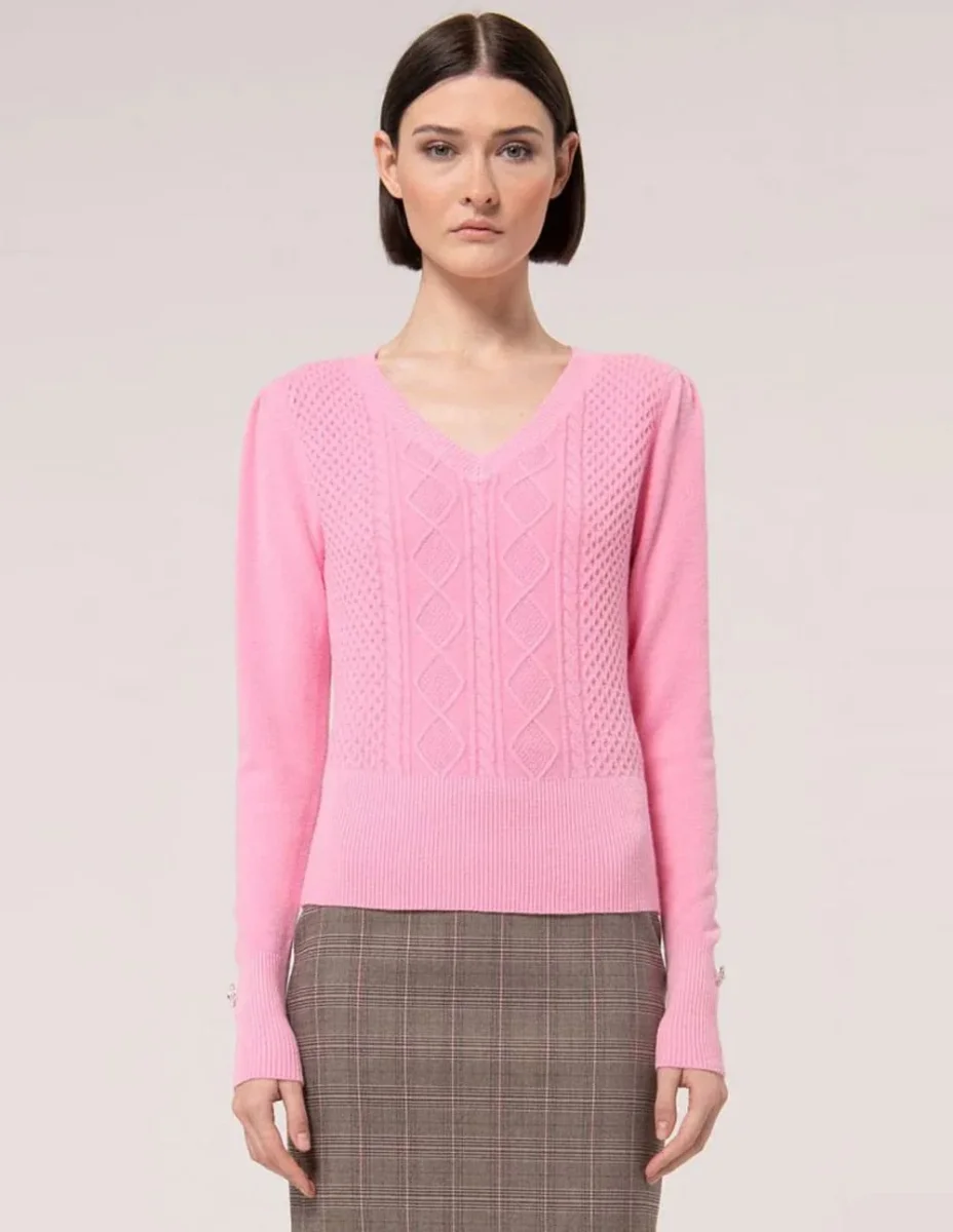 Jersey Fracomina de Escote Pico Rosa Mujer