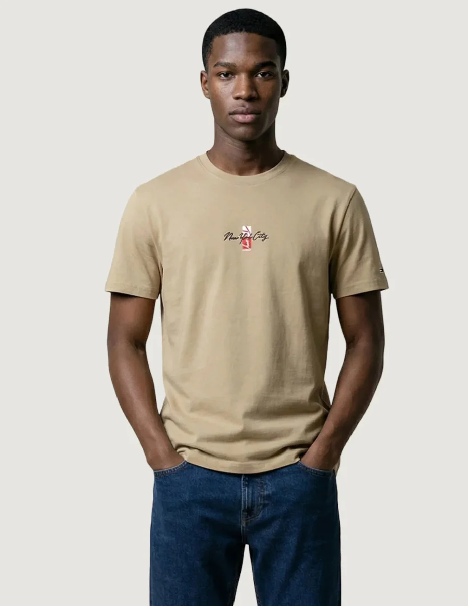 Camiseta Tommy Jeans Signature Logo Embroidery Beige Hombre