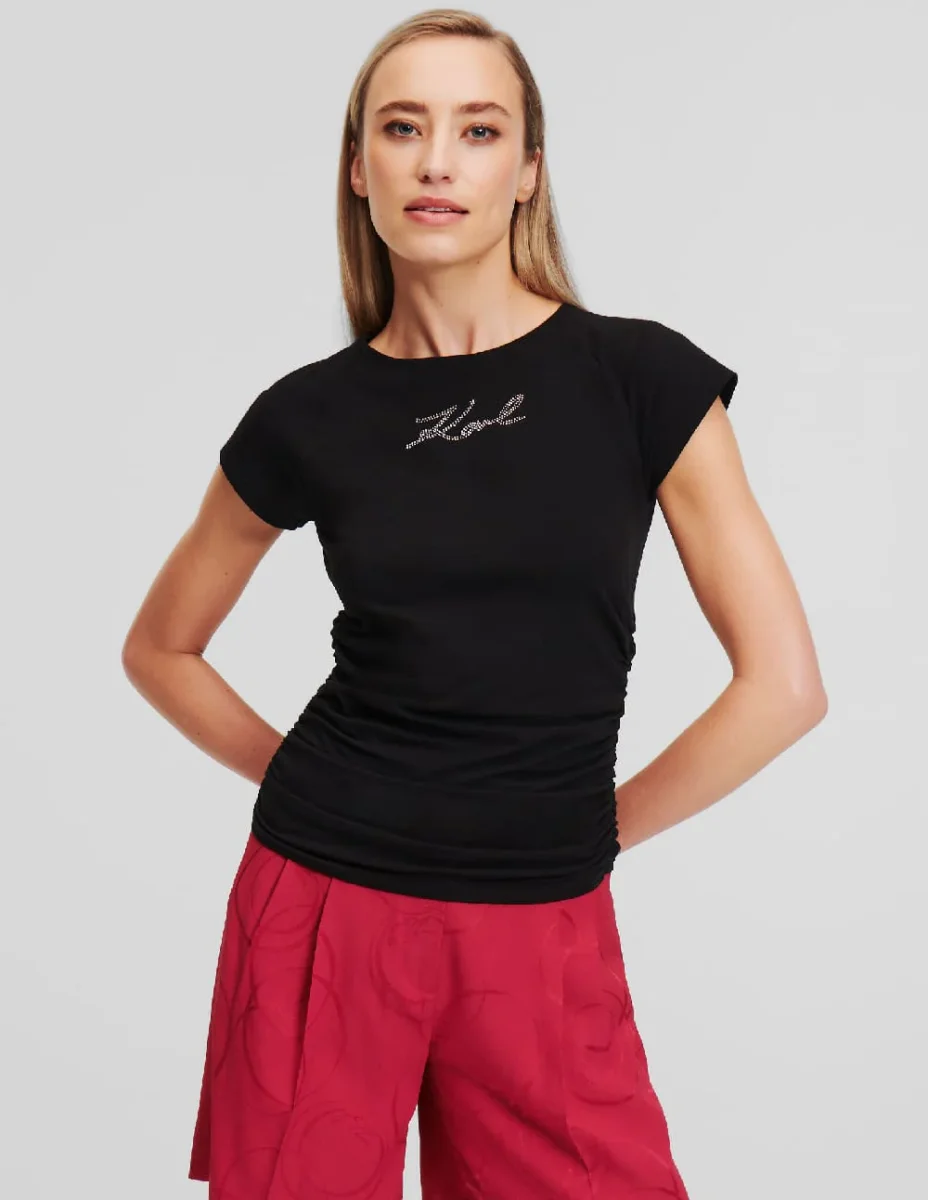 Camiseta Karl Lagerfeld con Pedreria Negra Mujer