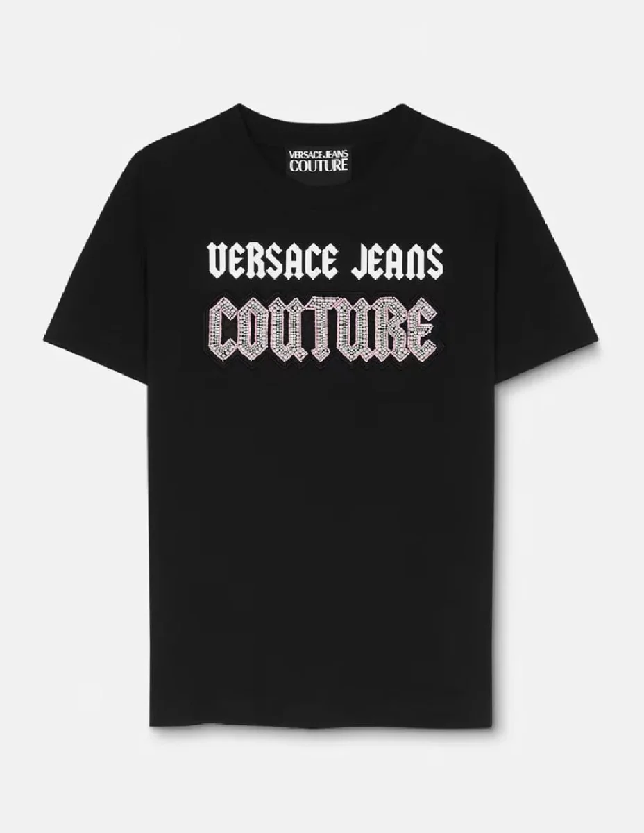Camiseta Versace Jeans Couture con Logo Gótico Negra Mujer