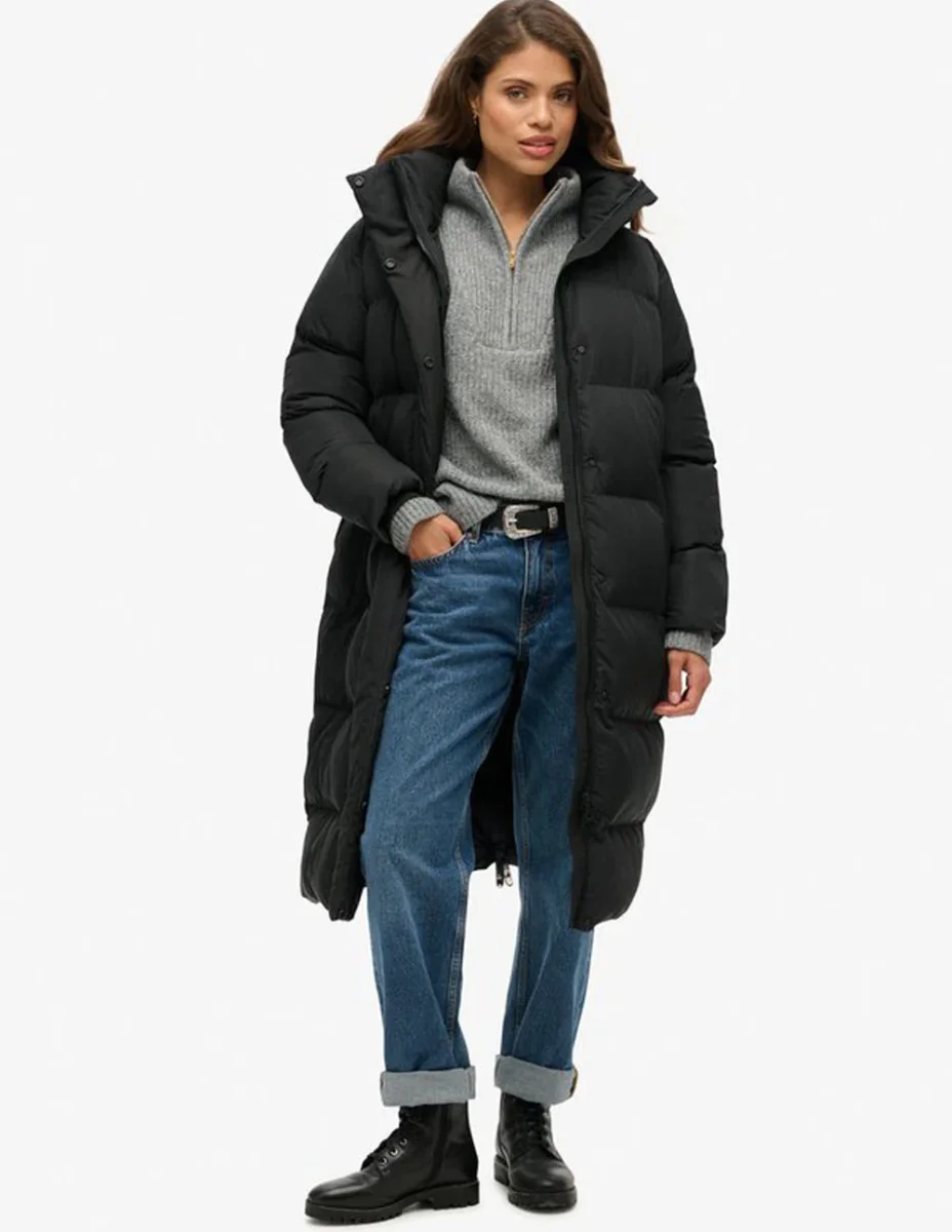 Abrigo Superdry Largo Negro Mujer