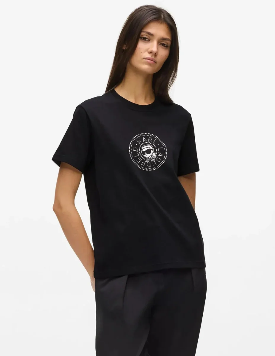 Camiseta Karl Lagerfeld con Logo Circle Ikon Negra Mujer