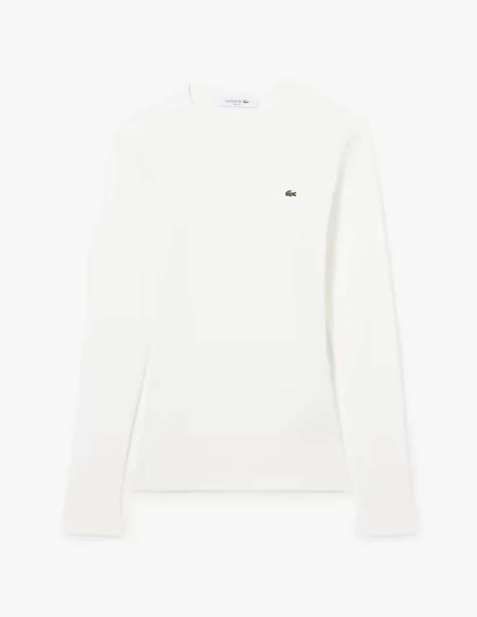 Camiseta Lacoste de Canalé de Manga Larga Blanca Mujer
