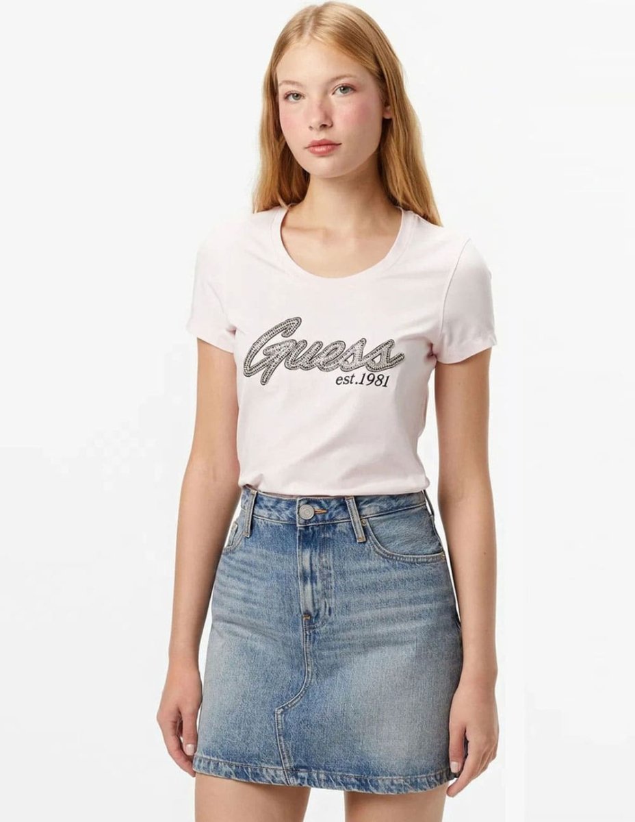 Camiseta GUESS con Logo de Pedreria Rosa Mujer