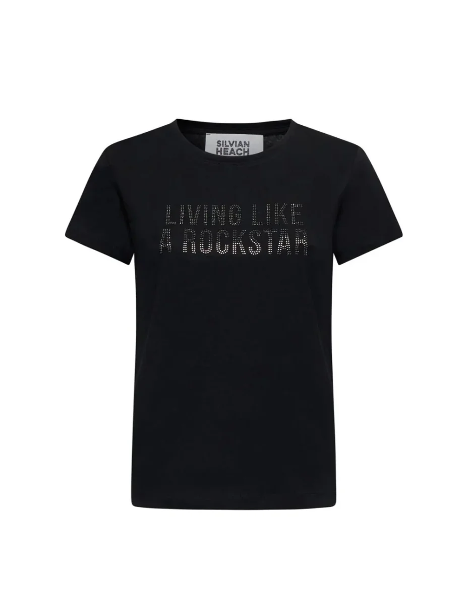 Camiseta Silvian Heach Printed Writing Negra Mujer
