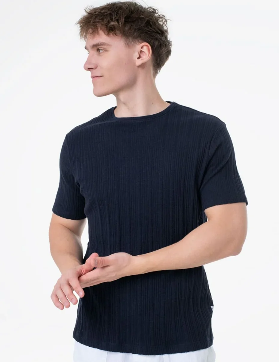Camiseta GUESS de Rayas Texturizada Negra Hombre