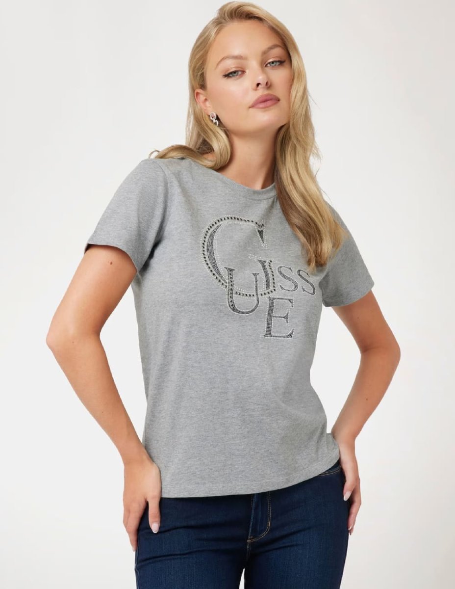 Camiseta GUESS con Logo con Tachuelas Gris Mujer