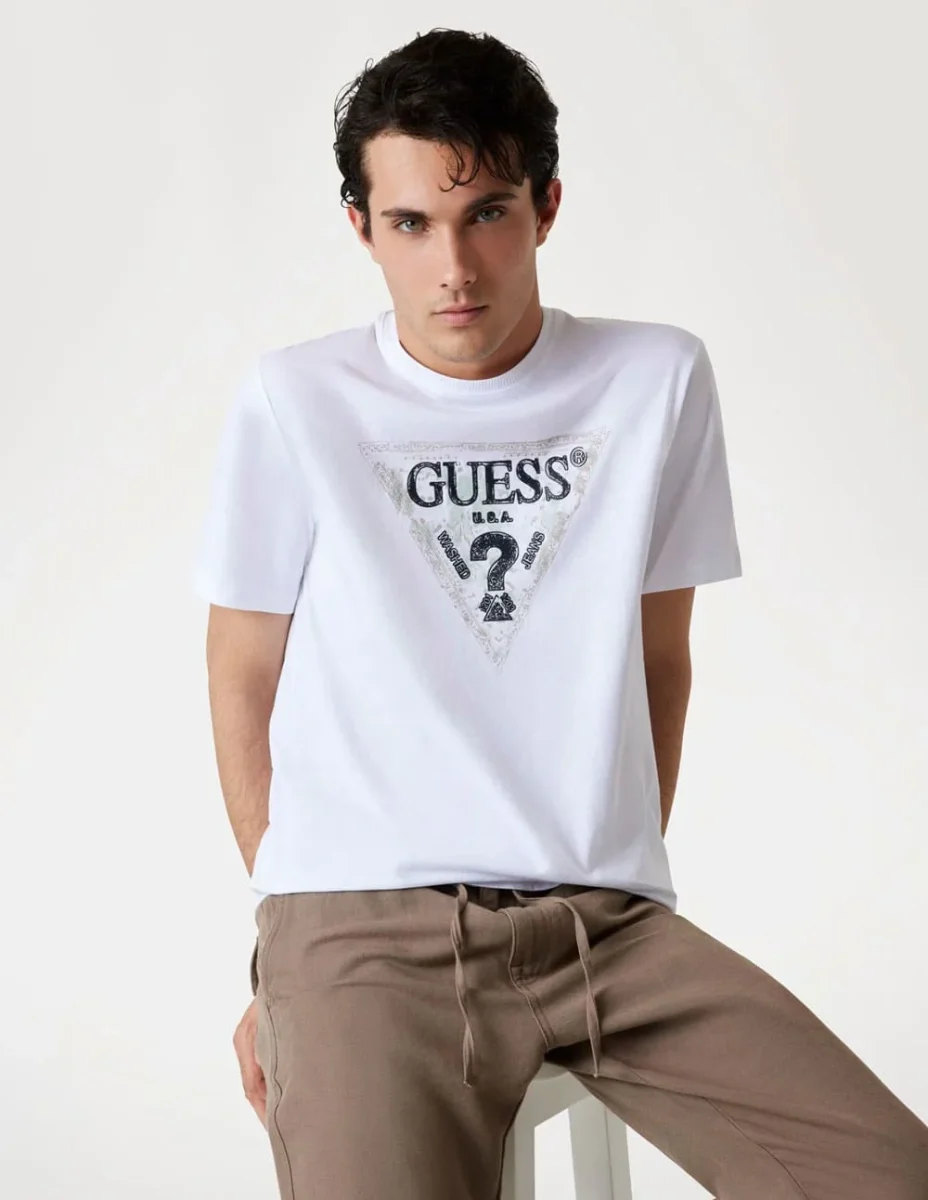 Camiseta GUESS con Logo Triángulo Blanca Hombre