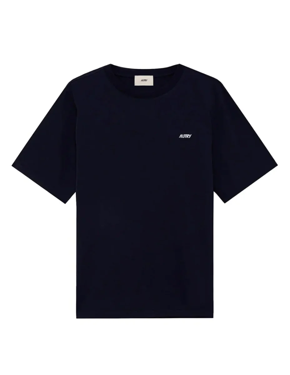 Camiseta Autry con Logo Bordado Azul Marino Mujer