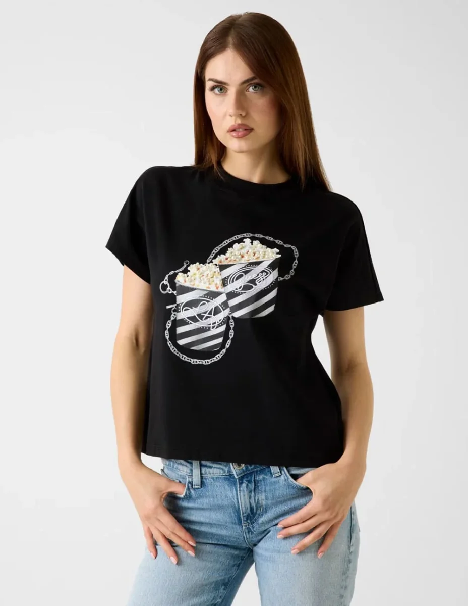 Camiseta GUESS con Logo Triángulo Negra Mujer