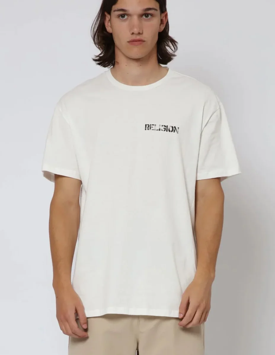 Camiseta RELIGION Skull Stencil Blanca Hombre