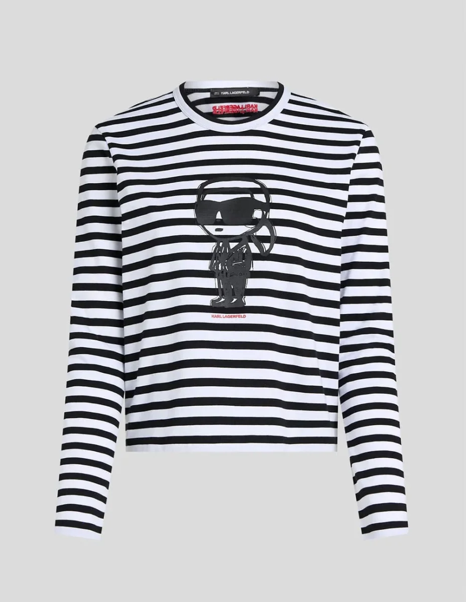 Camiseta Karl Lagerfeld de Manga Larga de Rayas Ikon Negra y Blanca Mujer