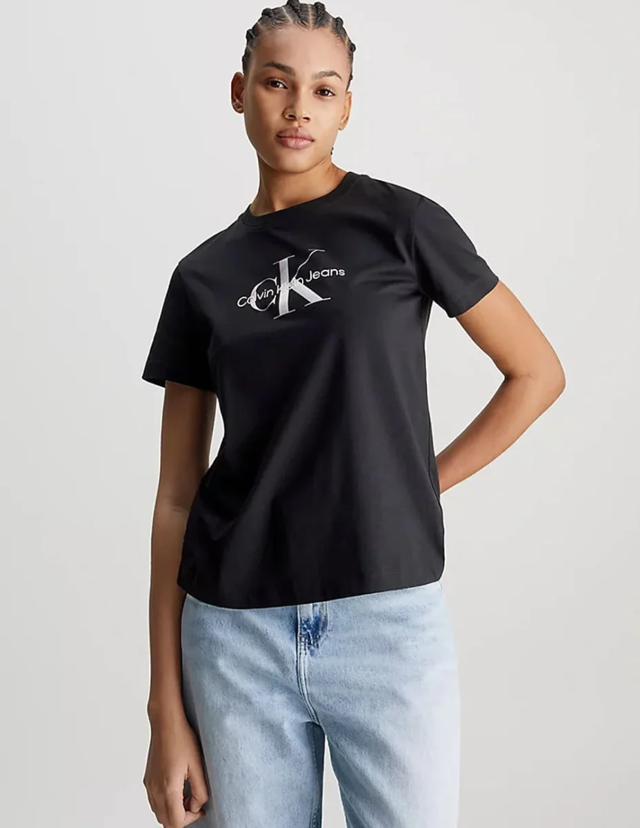 Camiseta Calvin Klein Jeans con Logo Tornasolado Negra Mujer