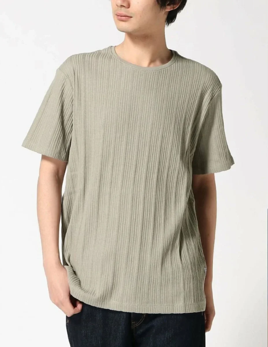 Camiseta GUESS de Rayas Texturizada Beige Hombre