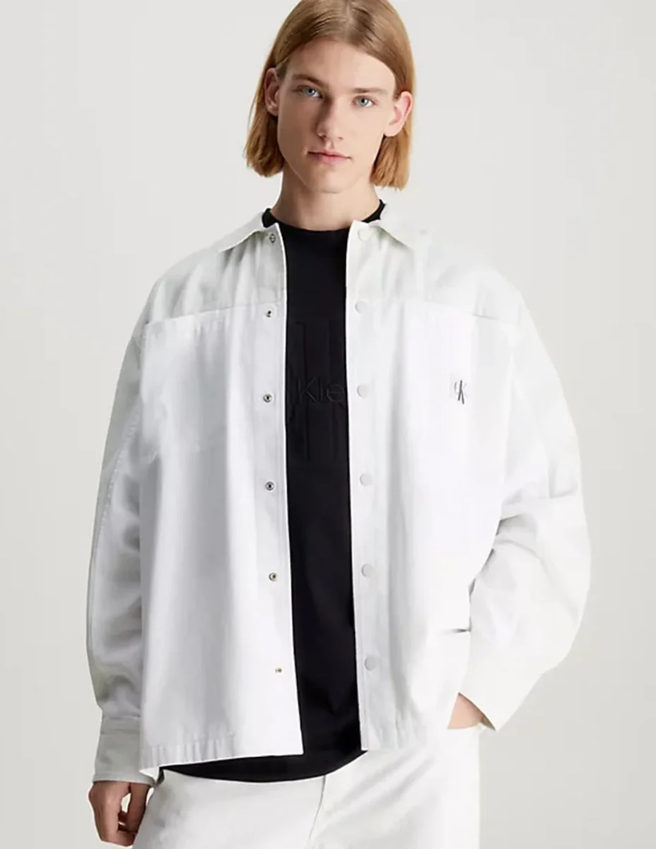 Sobrecamisa Calvin Klein Jeans de Sarga de Algodon Blanca Hombre