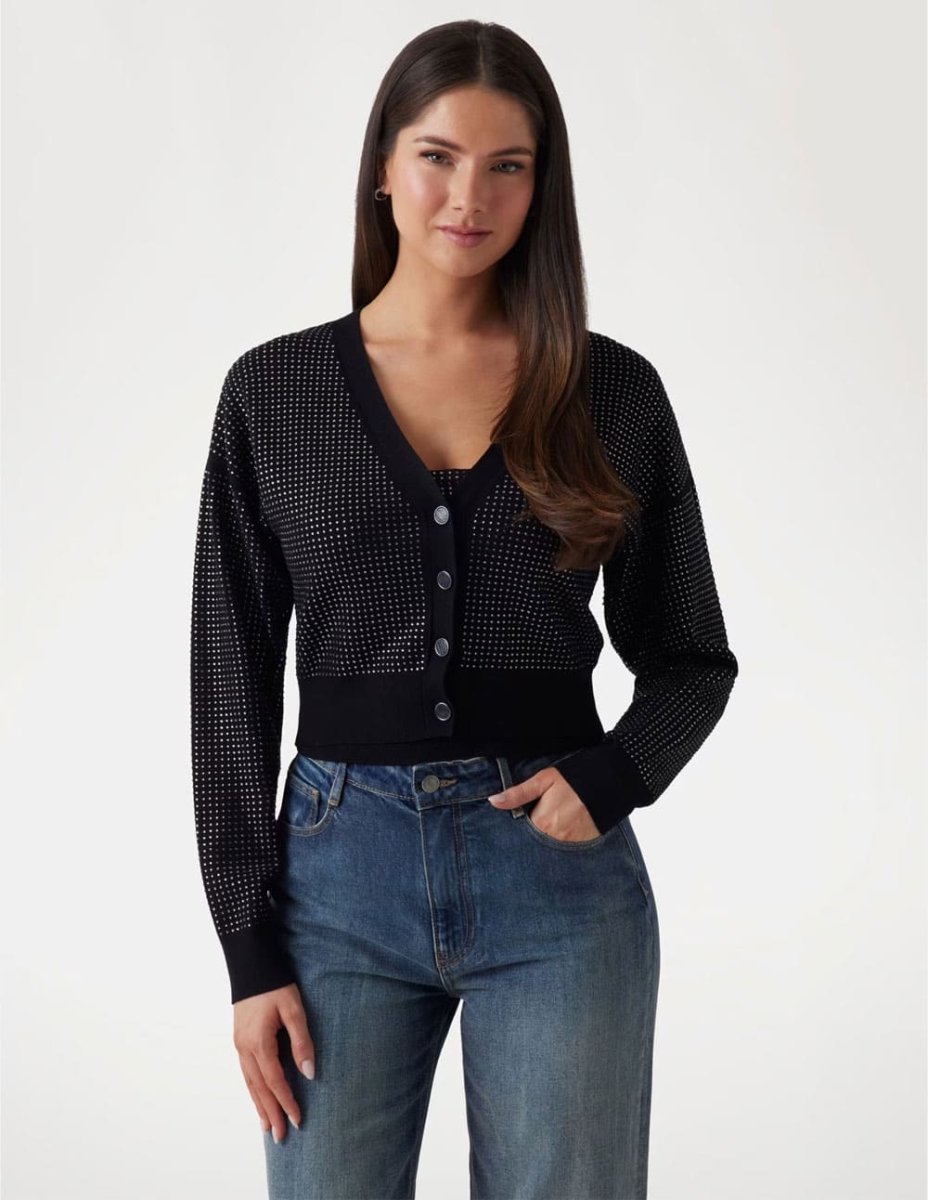 Chaqueta GUESS Corta con Strass Negra Mujer