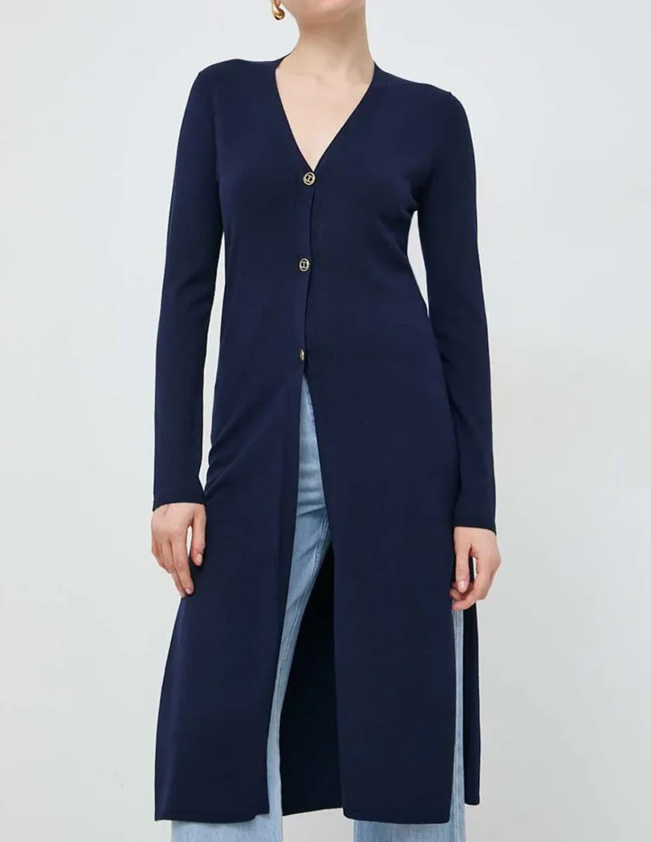 Chaqueta Larga TWINSET con Aberturas Azul Mujer