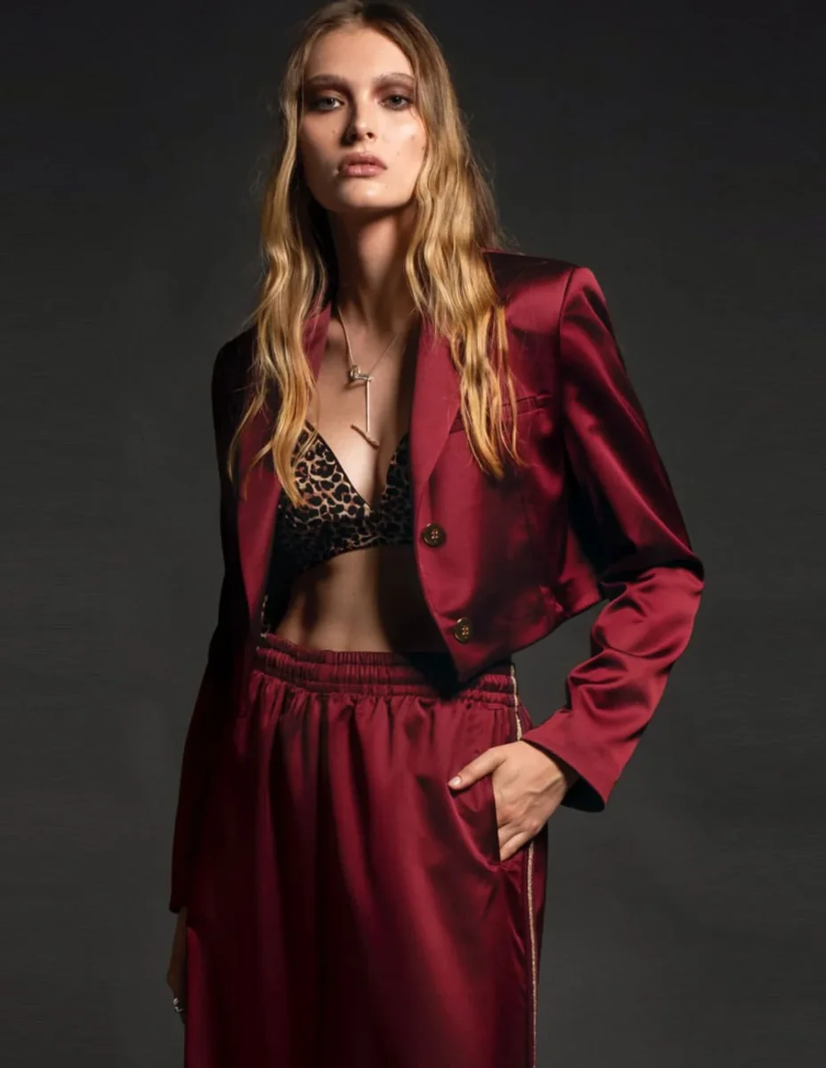 Blazer Corta Peace and Chaos Sleek Burdeos Mujer