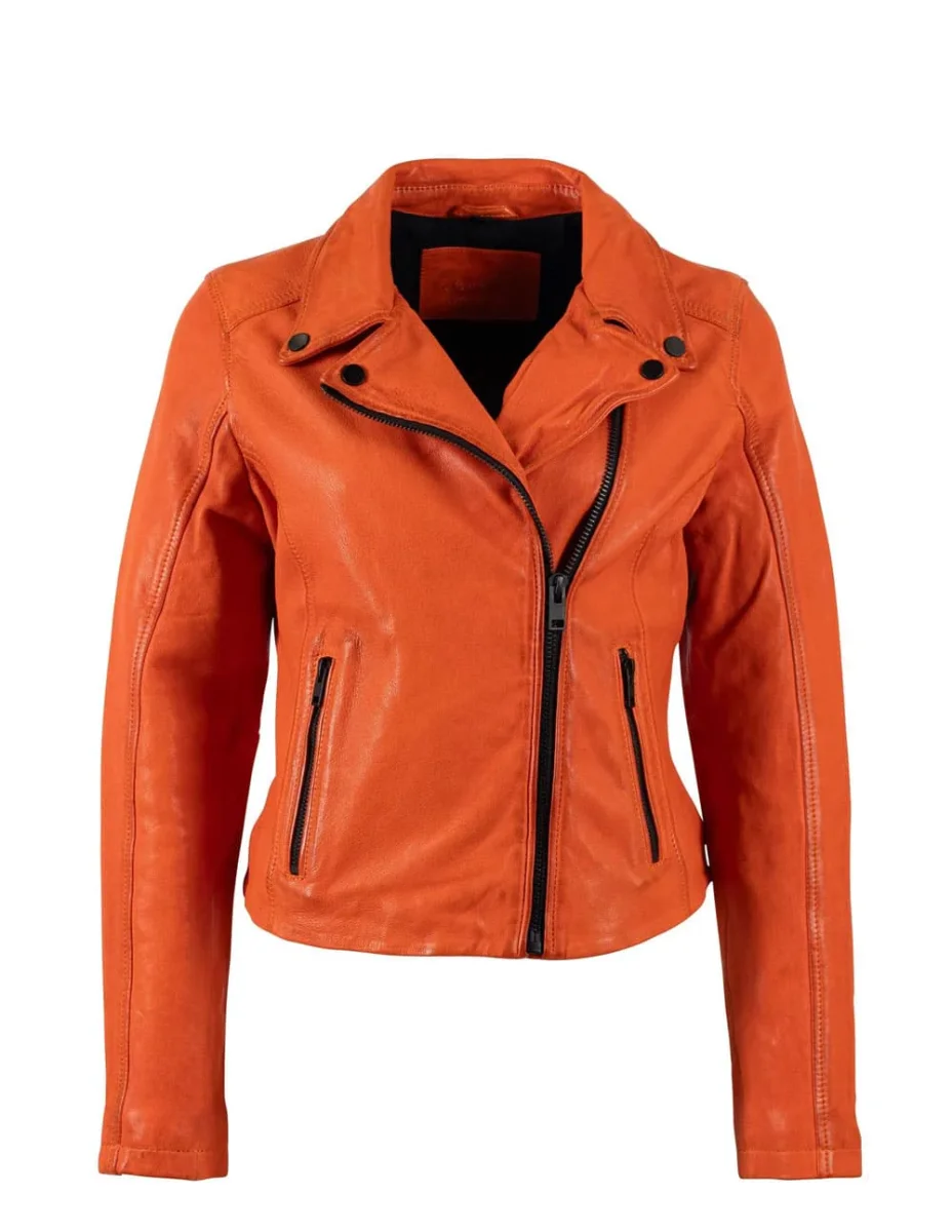Cazadora de Cuero Mauritius Michelle Naranja Mujer