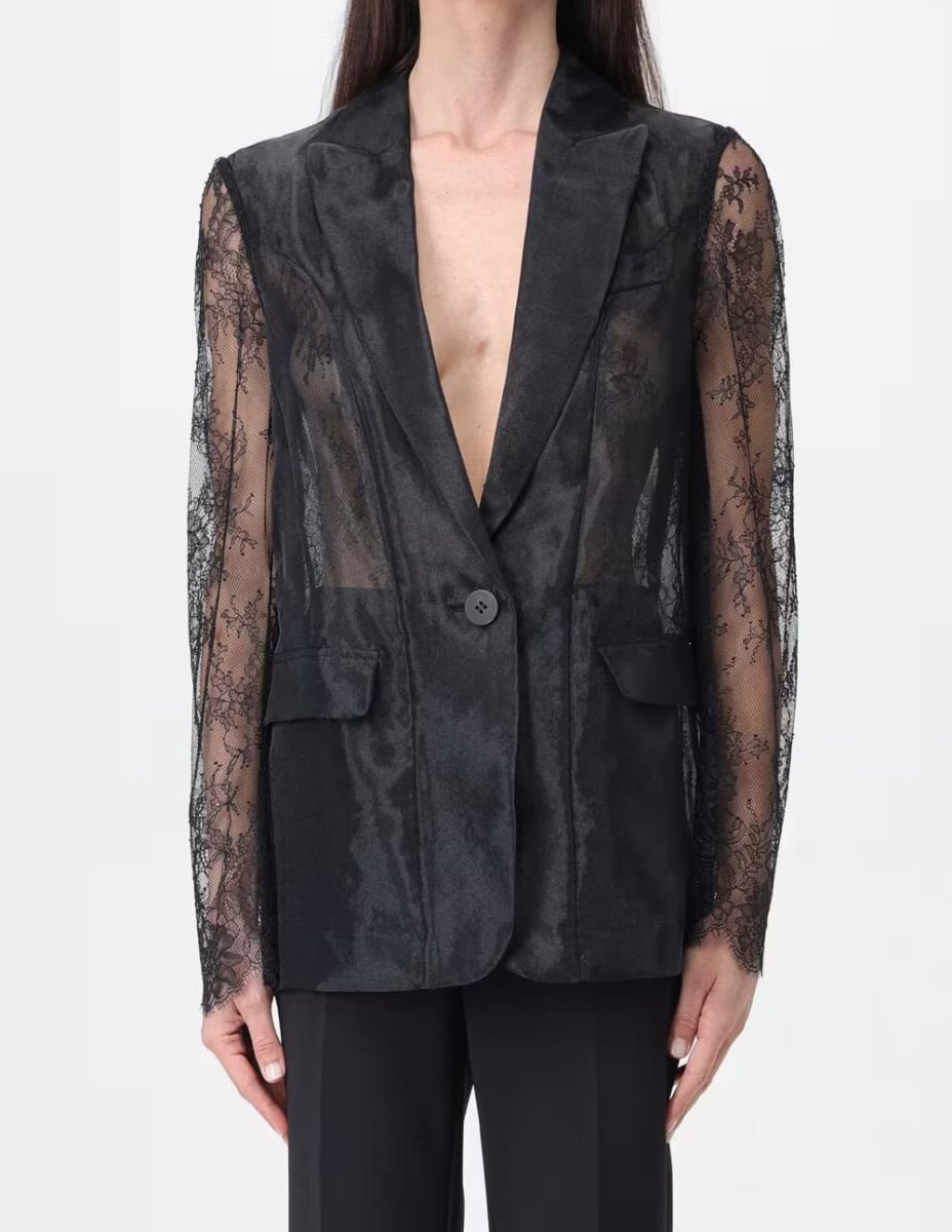 Blazer TWINSET de Organza y Encaje Negra Mujer