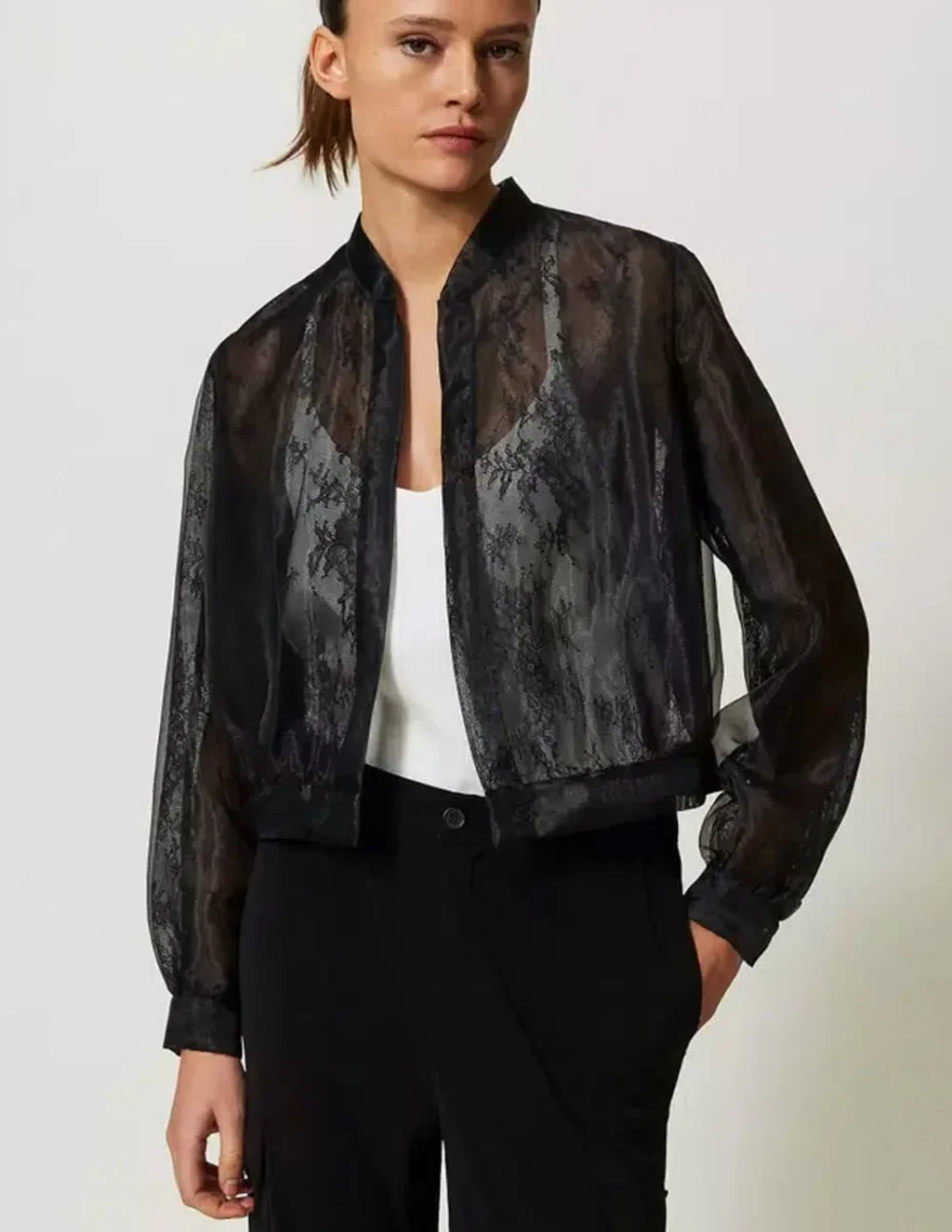 Cazadora Corta TWINSET de Organza y Encaje Negra Mujer