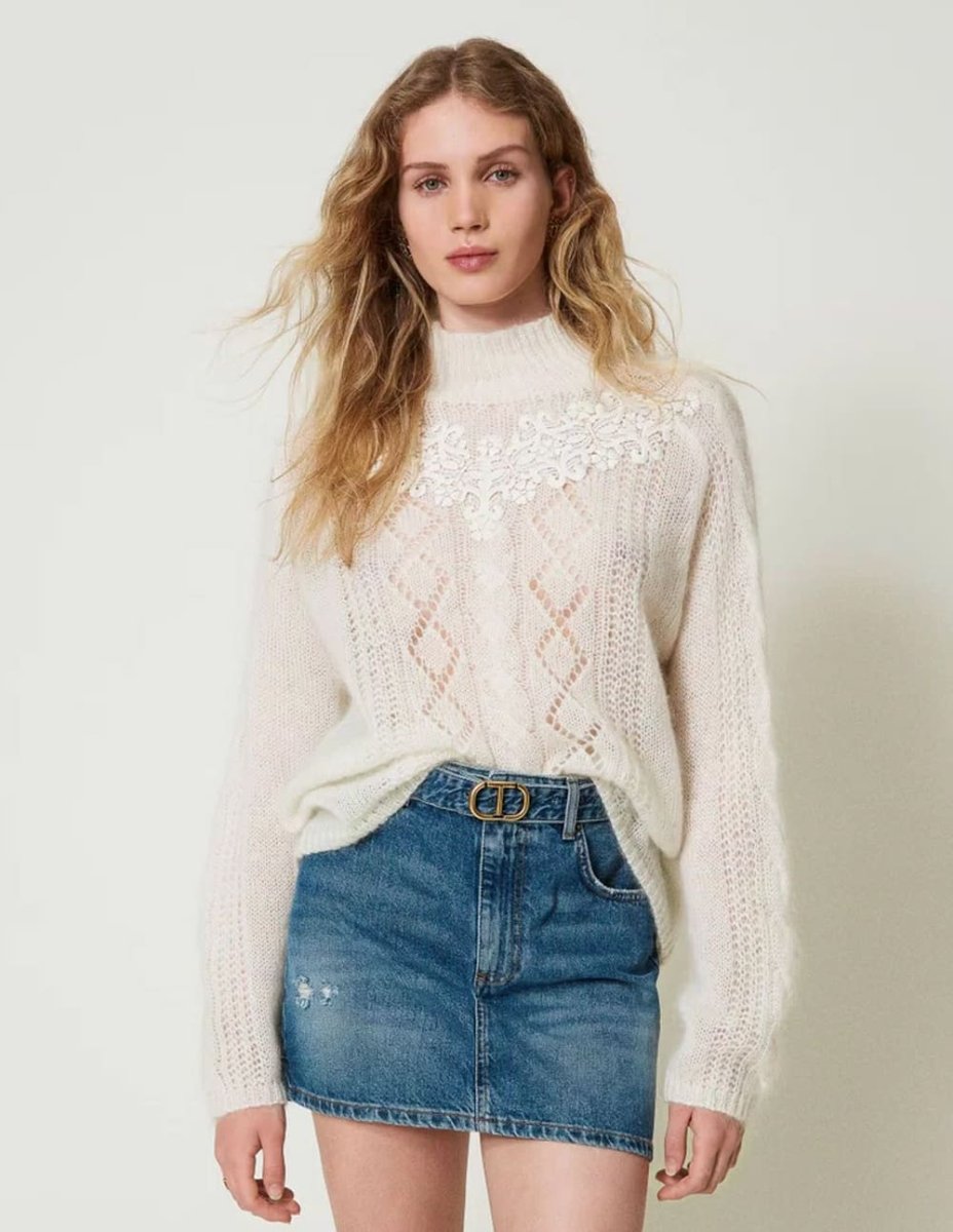 Jersey TWINSET de Lana y Mohair con Encaje Blanco Mujer