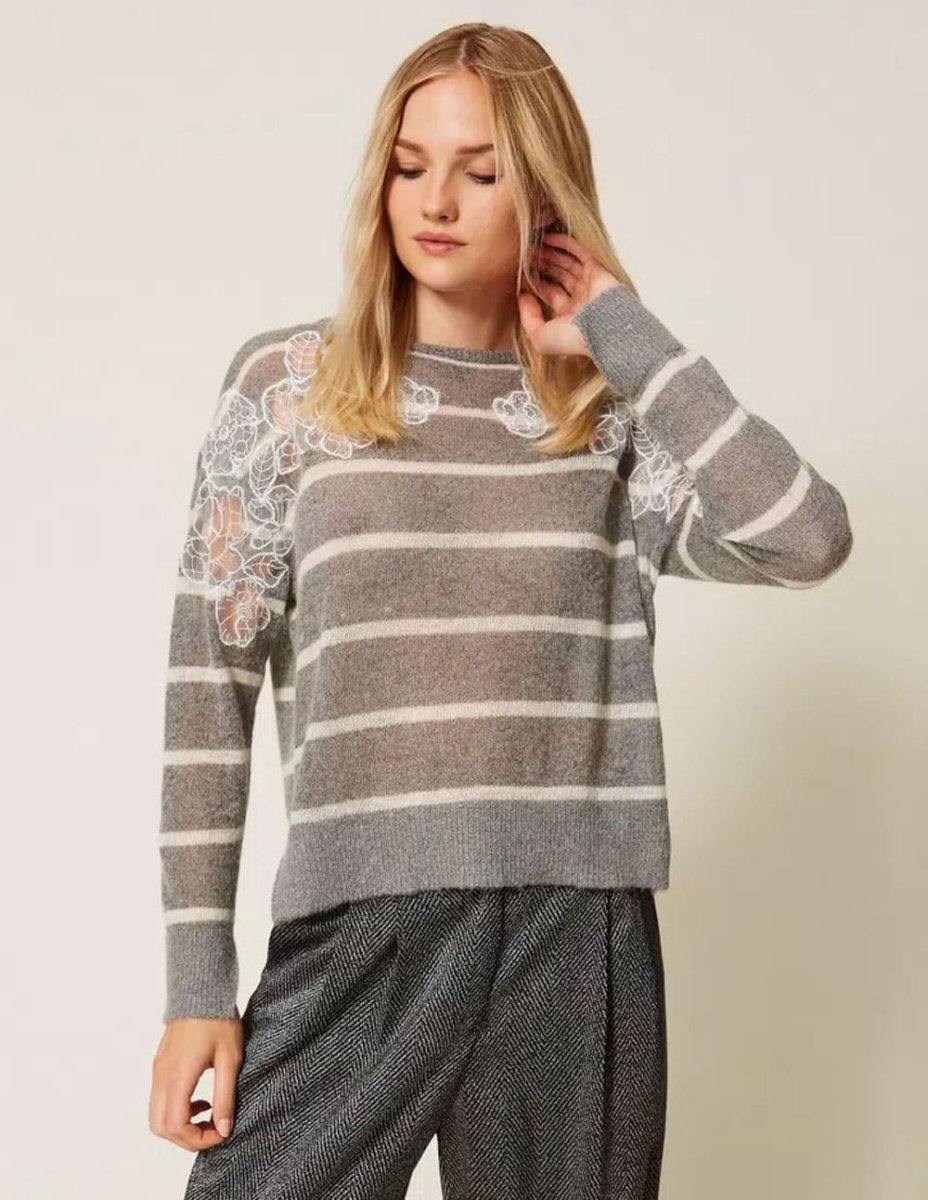 Jersey TWINSET de Mohair con Encaje Gris Mujer