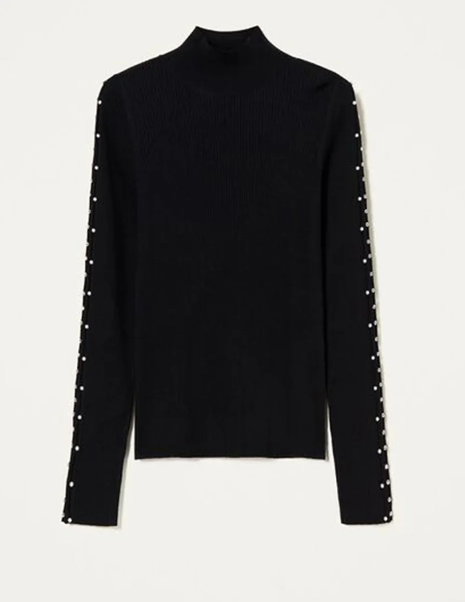 Jersey TWINSET de Cuello Alto con Cuentas y Strass Negro Mujer