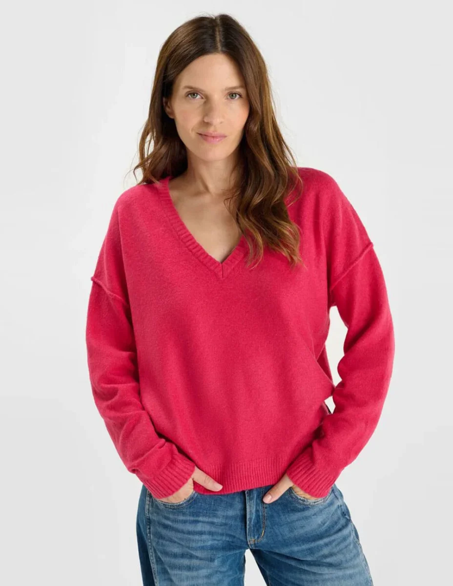 Jersey Fracomina De Escote Pico Rosa Mujer