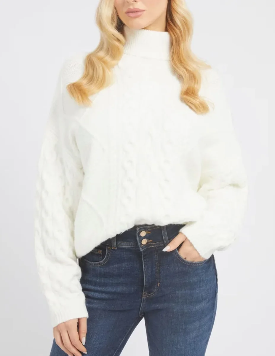Jersey GUESS de Punto Trenzado Blanco Mujer