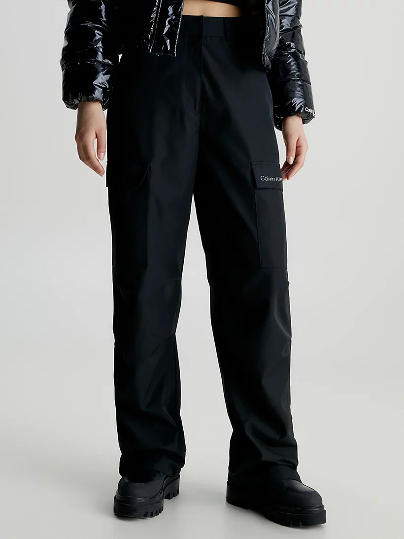 Pantalón Calvin Klein Jeans Holgado con Logo Negro Mujer