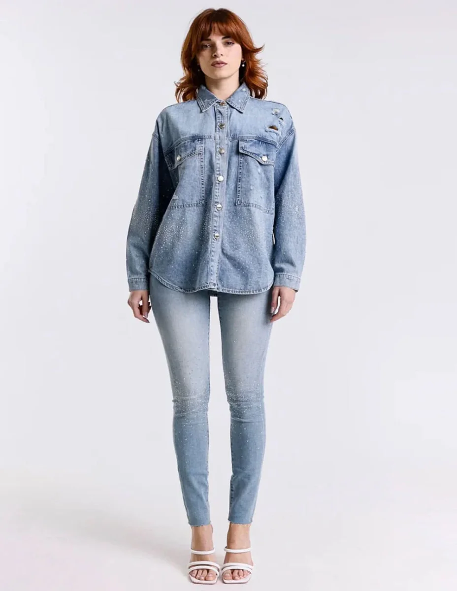 Pantalon Vaquero MET con Tachuelas Azul Mujer