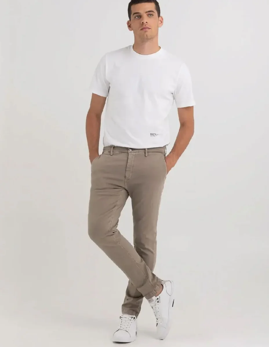 Pantalón Replay Slim Zeumar Hyperflex Beige Hombre