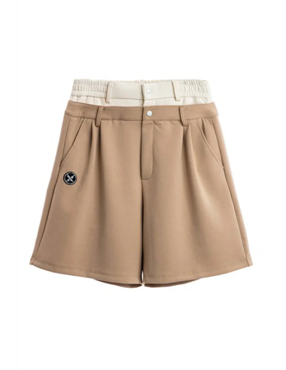 Pantalón Corto MWM con Doble Cintura Beige Unisex
