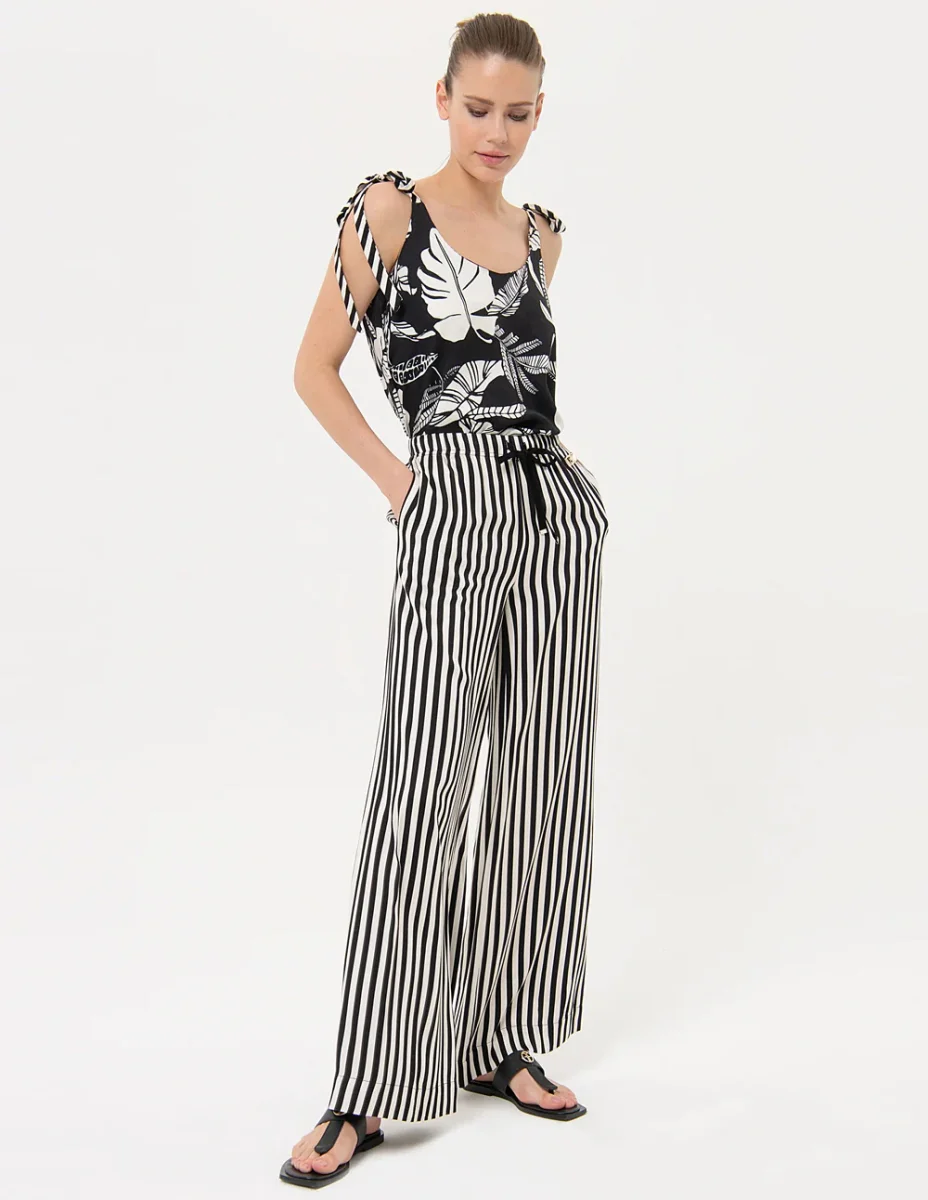 Pantalón Fracomina Palazzo de Rayas Negro y Blanco Mujer