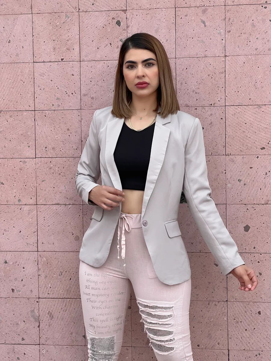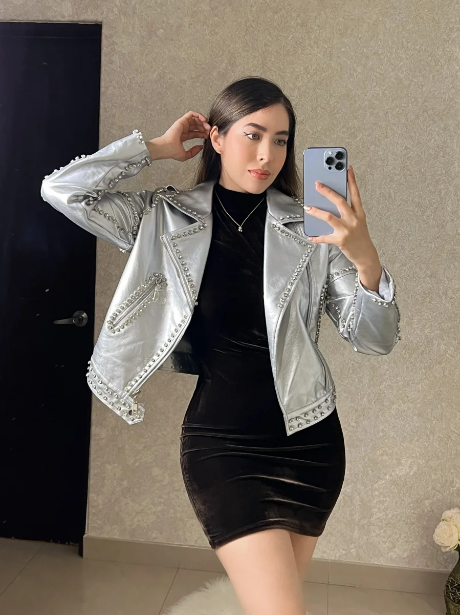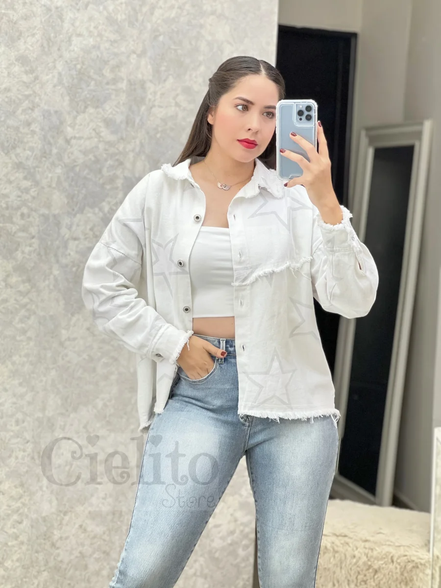 CHAQUETA MEZCLILLA AZUL CON PEDRERÍA