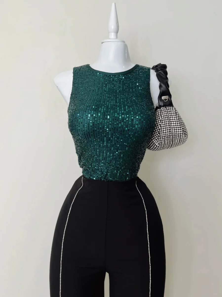 TOP Y BLUSÓN CON LENTEJUELAS VERDE