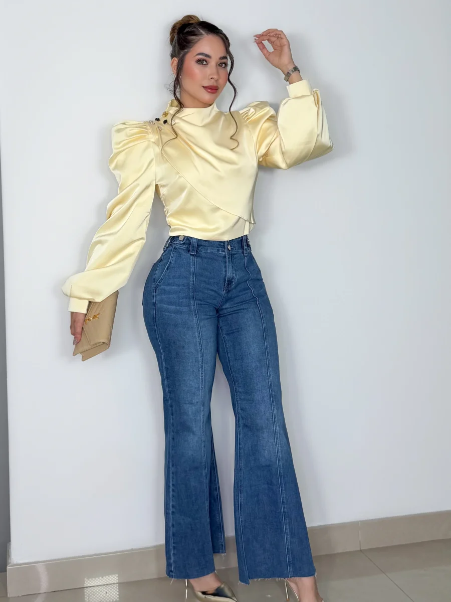 BLUSA GRIS MANGA LARGA CON LENTEJUELAS