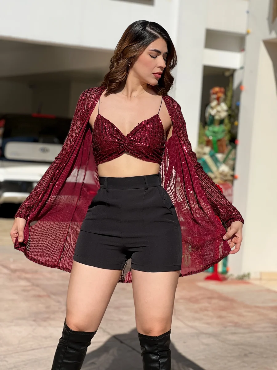 TOP Y BLUSÓN CON LENTEJUELAS ROJO